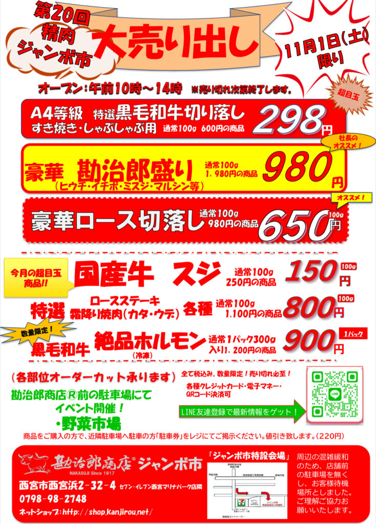 🍁第20回 勘治郎商店® ジャンボ市 大売り出し 開催のお知らせ‼